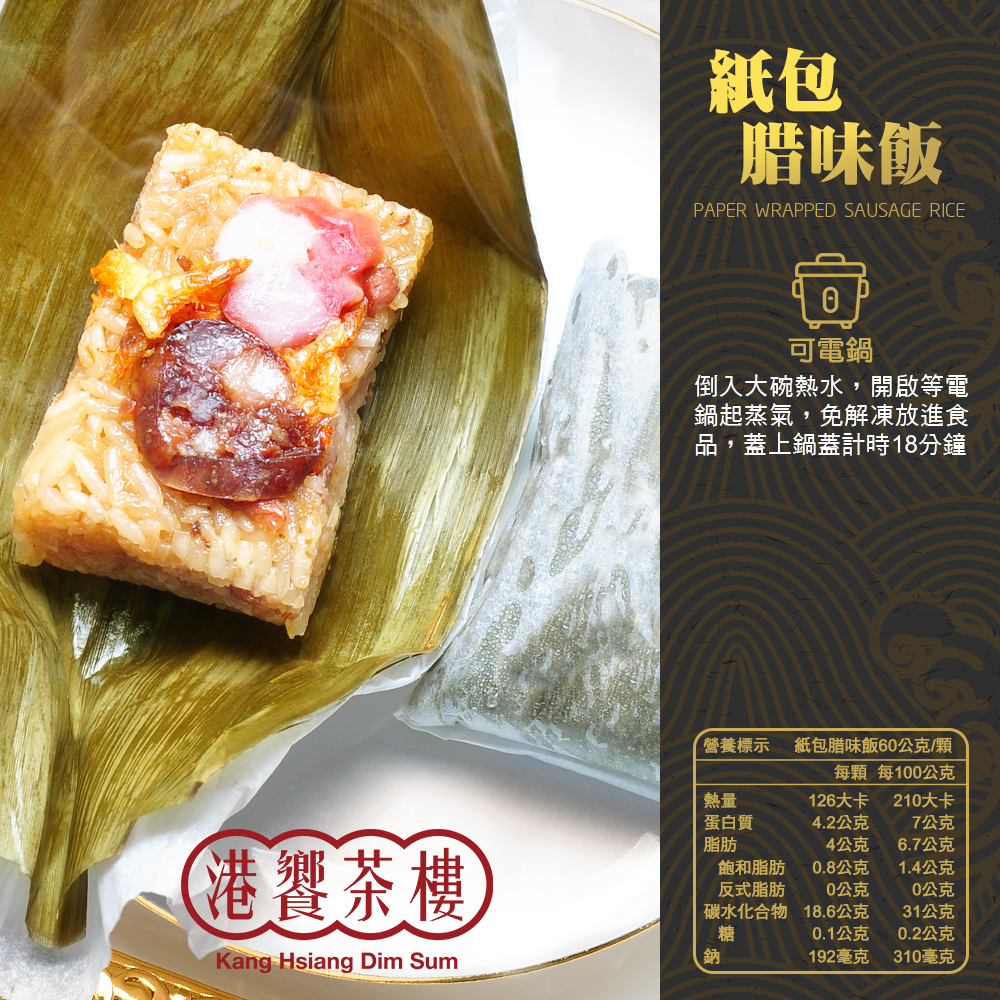 ●紙包腊味飯-嚴選台灣豬腊腸用料十足